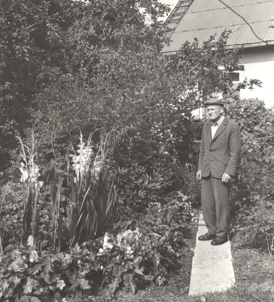 Kazimieras Brazauskas (1906–1997) savo sodyboje J. Biliūno gatvėje, Kaišiadoryse (1981 m.). KšM