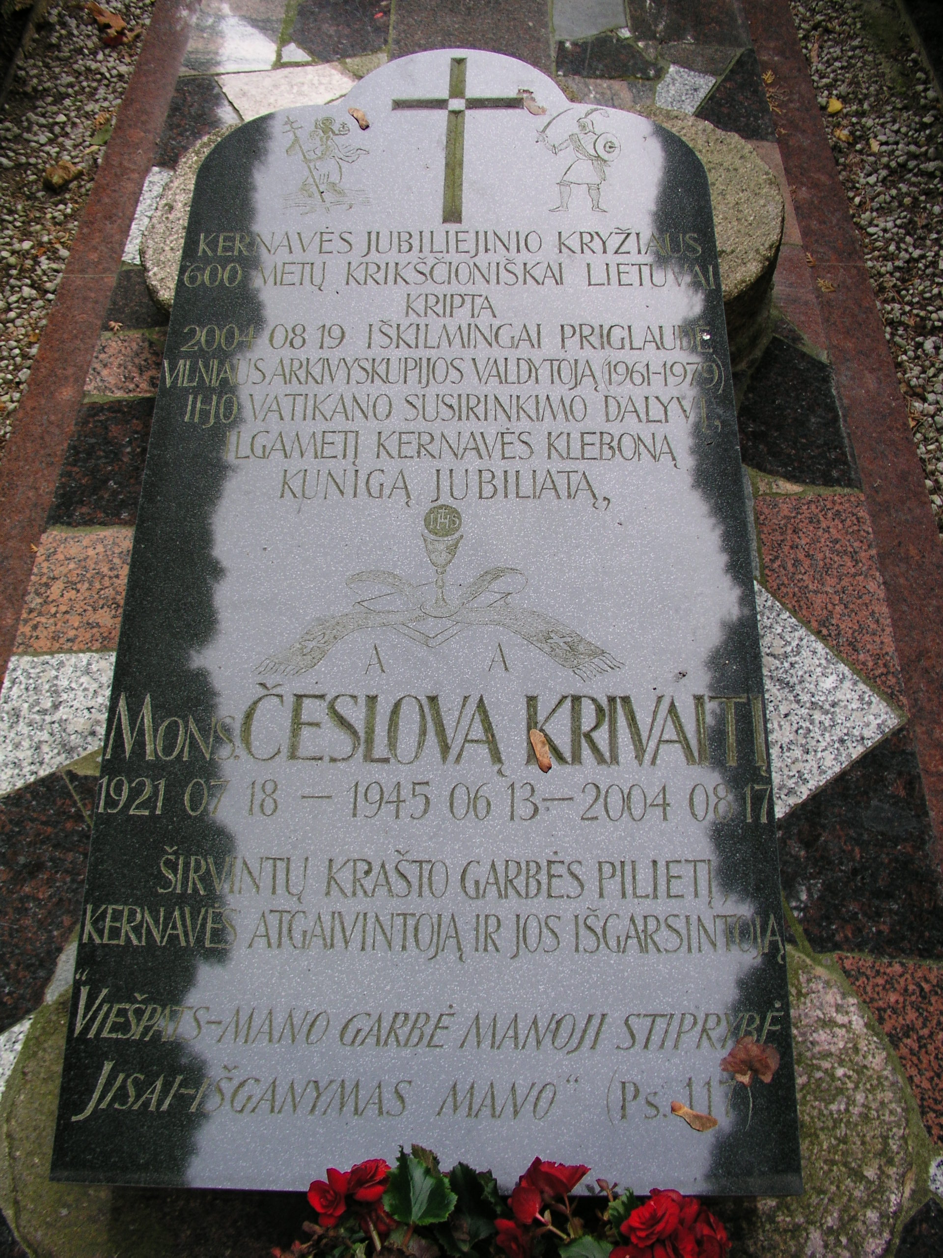 Krivaitis (Krivka) Česlovas (1921 m. liepos 18 d. Žebertonių k., Kietaviškių valsč., Trakų apskr. – 2004 m. rugpjūčio 17 d. Kernavėje, palaidotas Kernavės bažnyčios šventoriuje) - kunigas, monsinjoras.