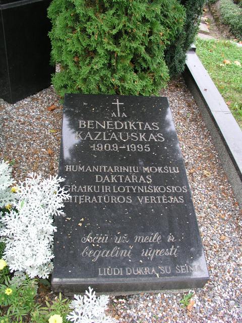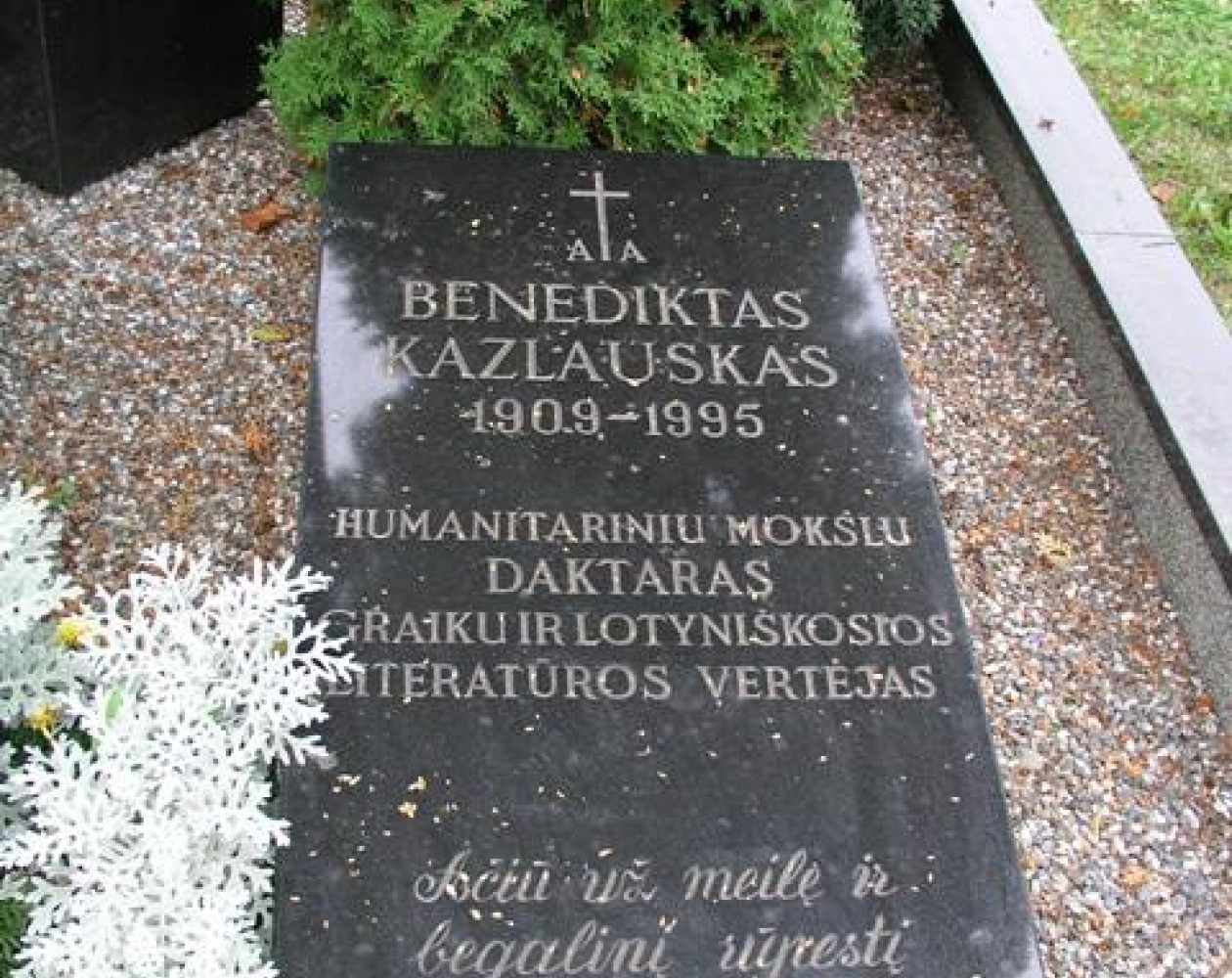 Benediktas Kazlauskas - VDU studentas. LCVAKnygos viršelis: Bojeris, Laurencijus. Karolių mūšis / iš lotynų kalbos vertė Benediktas Kazlauskas: vertimų tekstai studijuojantiems lotynų kalbą metodinės rekomendacijos). – Vilnius, 1981.