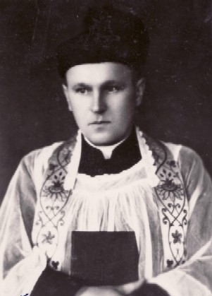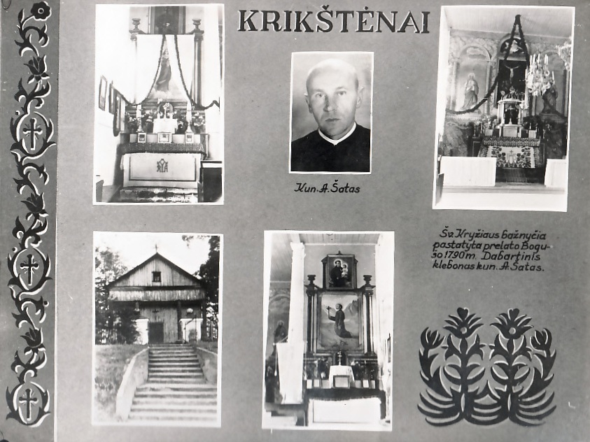 Alfonsas Šatas apie 1930 m. LCVA.Alfonsas Šatas apie 1965 m. LCVA.Krikštėnų bažnyčia ir jos klebonas Alfonsas Šatas. Vinjetė iš albumo „Kaišiadorių vyskupija. 1957“.