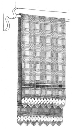 Rankšluosčiai kasdieniniam naudojimui kabodavo ant sienos užpečkyje. Ten pat stovėdavo dubuo su vandeniu. Dekoratyvinis rankšluostis kabodavo rankšluostinėje, kairėje durų pusėje, tarp dviejų langų (Miežonys). Abrūsas austas keturiomis nytimis. „Ragoškinis“. Raštas rožinis. Įaustini metai „1949“. Metmenys medvilnė, atausta nebalintais linais (Pašuliai). Pakabink nors nedėliai gražesnį abrūsą ant sienos (Gegužinė).