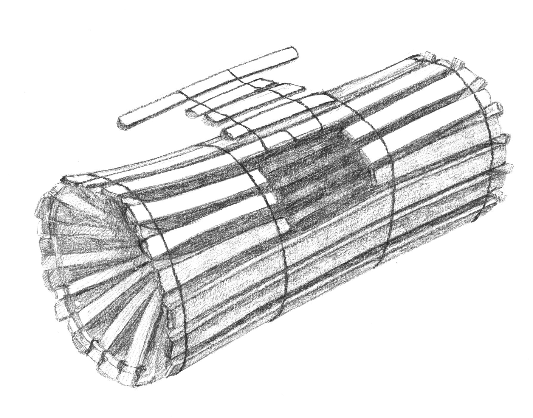 Lankas apvalas. Aprišta virvelėm, a gale taip surišta siaurai. Tokia kap kepurė padaryta. Kaip ten žuvis ineina, a išeiti negali atgal (Palomenė).