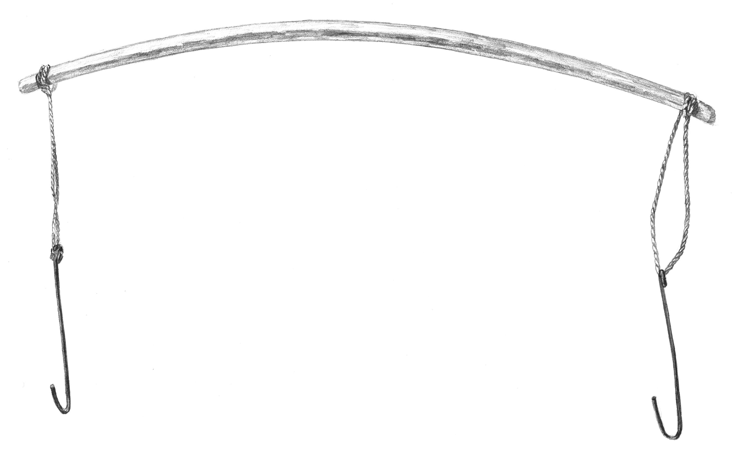 Ant tokios karties pakabyti du kabikai iš galų. Ir ant tų kabikų užsikabini viedrus vandeniui nešti (Žasliai).