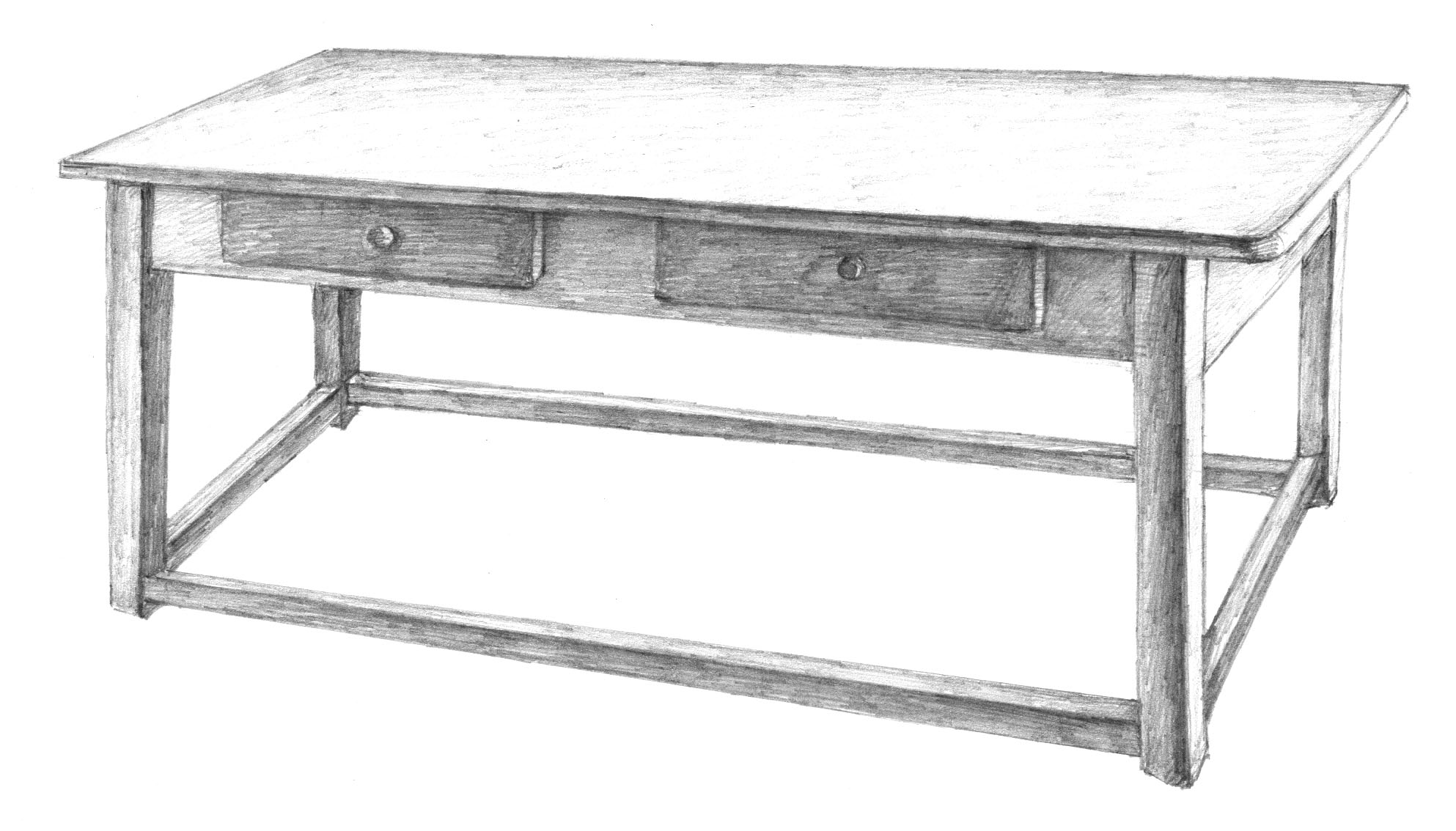 Stalai rėminės konstrukcijos, su šoninėmis bei galinėmis pakojomis, vienu nemažu stalčiumi. Vietiniai žmonės tokį stalą vadino stalu surištomis kojomis aplinkui (Žasliai, Paparčiai).