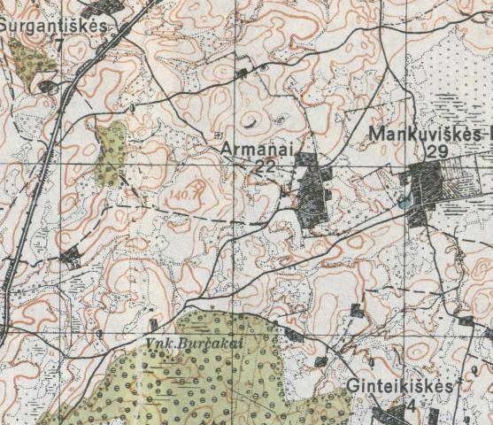 Pirmąkart Armanai minimi 1923 m. Lietuvos gyventojų surašymo medžiagoje (22 sodybos, 122 gyventojai). 1931 m. – 24 sodybos ir 186,44 ha žemės. Tais metais kaimas su 162,97 ha žemės išskirstytas į vienkiemius. Didžiausias sklypas (18,49 ha) priklausė A. Slavinsko vaikams. Kaime tuo metu paplitusios Germanavičiaus ir Benkunsko pavardės. 1943 m. priverstiniams darbams į Vokietiją išvežtas T. Kasilovskis. Grįžo 1946 m.