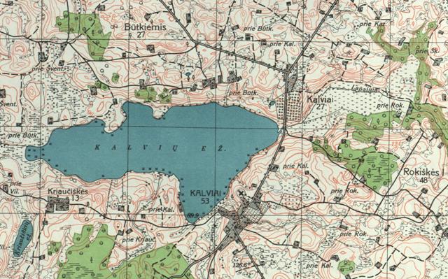 Kalvių ežeras – ežeras. Ilgis apie 3 km, plotis apie 1 km. Apie 300 m nuo miestelio į šiaurės vakarus.
