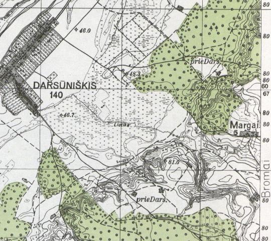 Ravas (vietos tarme Riavas) – pieva. Priemolis. Įdubimas su stačiais krantais. 300 m ilgio. „Po lietaus pasidaro upeliukas. Nuteka į Darsūniškio pievas”.