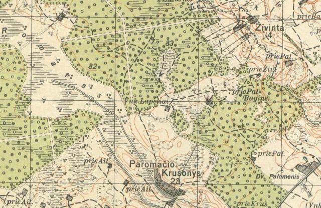 Lapeliai (Lapelas) – vienkiemis, lyguma. 20 ha dydžio.