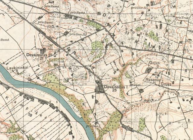 Antrojo pasaulinio karo pabaigoje, per 1944 m. vasaros mūšius, buvo sudeginta daug gyvenamųjų namų ir ūkinių pastatų; tuo metu čia žmonės negyveno, o buvo evakuoti toliau nuo fronto. Šio kaimo vietoje buvo sovietinės kariuomenės 144 šaulių divizijos ūkio kuopos kepykla. Apšaudymo metu 1944 m. liepos 27 d. žuvo kepėjų būrio vyresnysis seržantas Georgijus Bežencevas. Buvo palaidotas Dovainonių II kaime; vėliau jo palaikai perkelti į Rumšiškių sovietinių karių kapines.