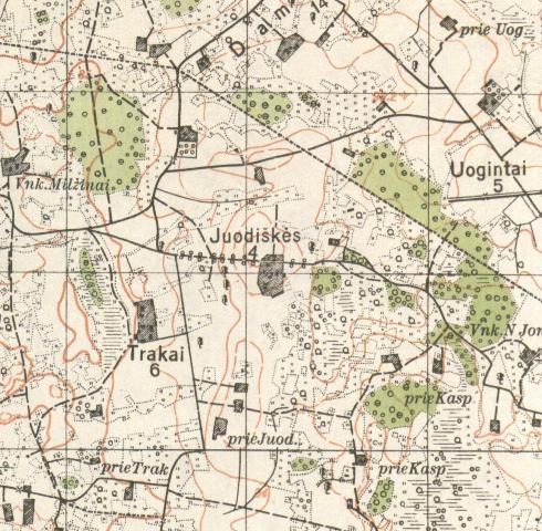 Trakai – ūkis. Lyguma, baltžemis, apie 10 ha dydžio. Šiaurinėje Juodiškių vienkiemio dalyje, Zujaus ūkis.