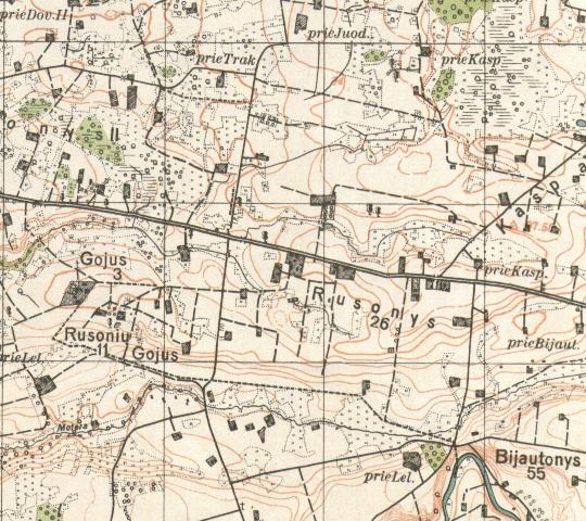 Rusonių pradžios mokyklos mokytoja Anastazija Kuzinevičienė 1935 m. lapkričio mėnesį užrašė Rusonių kaimo vietovardžius. Pateikėjai - Antanas Razulevičius ir Domas Kuzinevičius. Abu gimę Rusonių kaime.