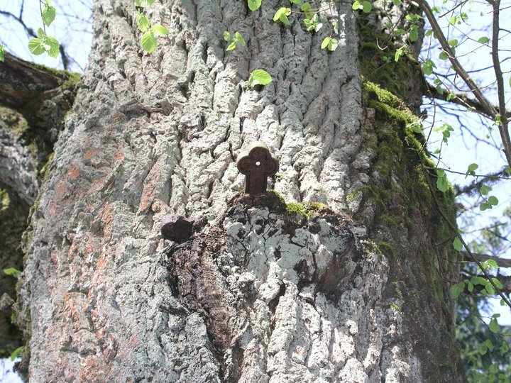 Apie 0,7 km į šiaurę nuo Gyvatiškių viensėdžio, Karsakų miške, vietoje, vadinamoje Kryžkeliu, kur susieina trys keliai, stovi senas ąžuolas su įaugusiu jame kryžiumi. Pasakojama, kad ten, „kur kryžius, buvo netoli Boleslavovos (Balinės) palivarkas. Tame dvare tarnavo tokia merga Zoska. Ji pasikorė iš meilės ant to ąžuolo. Dvaro ponia įsakė ant to ąžuolo pakabinti kryžių. Ir įaugo tas kryžius į ąžuolo kamieną – tik gabalas matosi“.