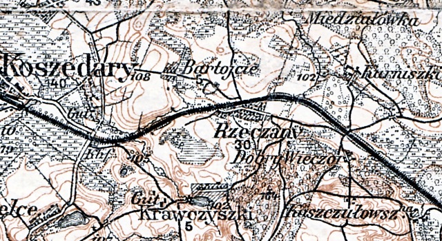 Kraštinės – ariama žemė. 2 ha dydžio. Priemolis. Nuo Rečionių kaimo į vakarus prie geležinkelio. „Dabar ši vieta yra ūkininko Miko Bagdzevičiaus”.