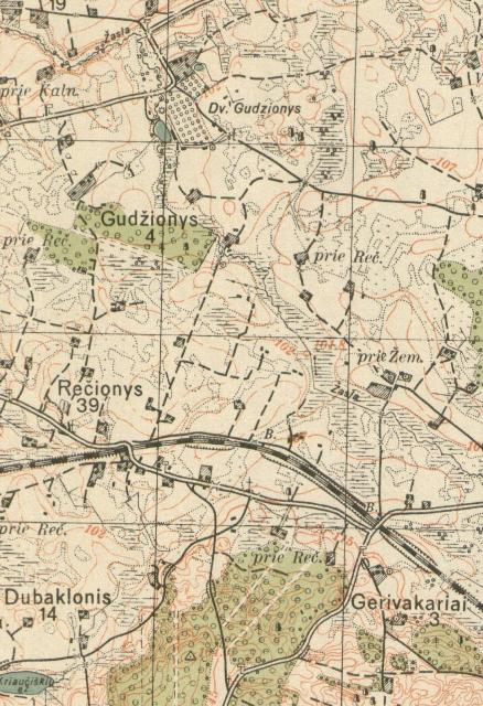 Paažuolys – ariama žemė. Priemolis, apie 3/4 ha dydžio. Tarp Rečionių kaimo vietos ir geležinkelio.