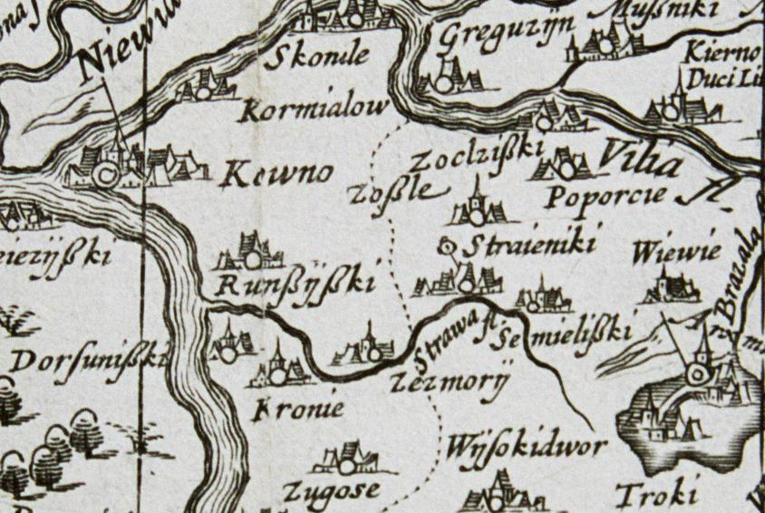 Žemėlapyje pažymint devynias dabartinio Kaišiadorių rajono gyvenvietes (Rumšiškes, Darsūniškį, Kruonį, Žiežmarius, Strėvininkus, Žaslius, Paparčius, Zūbiškes ir Gegužinę), panaudoti panašaus dydžio ir išvaizdos panoraminiai piešinėliai. Išsiskiria Strėvininkai, kurie pažymėti kaip „kaimas, kuriame yra bajoro dvaras“. Šioje vietoje reikia pasakyti, jog XVI a. Strėvininkus valdė Stravinskiai, o šio amžiaus pabaigoje Strėvininkai atiteko Bogdanui Oginskiui. Čia Oginskiai jau XVII a. pasistatė rūmus ir dvarą valdė net iki 1831 metų. Taip pat išsiskiria Gegužinė, kuri klaidingai pažymėta ne kairėje, o dešinėje Neries pusėje.
