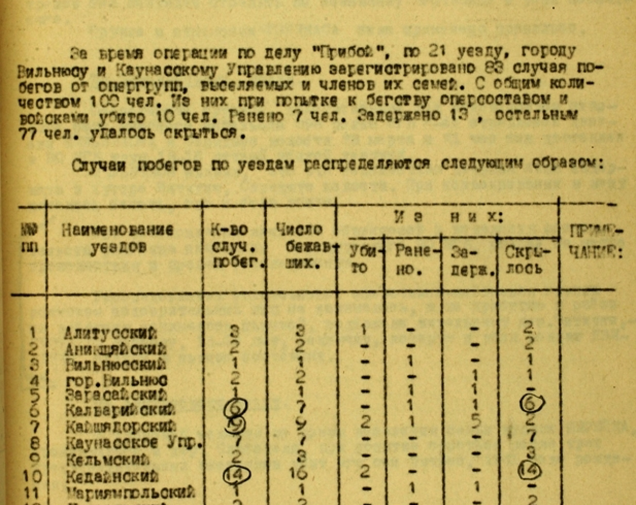 Daugiausia tremtinių buvo iš Kruonio apylinkės – 139 žmonės, iš Rumšiškių – 88, iš Žiežmarių – 74, iš Žaslių – 55. Tremtyje mirė septyniasdešimt penki tų metų tremtiniai, o grižę į Lietuvą mirė 173 tų metų tremtiniai.