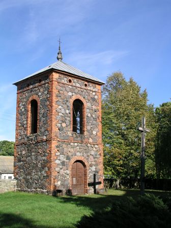 1862 m. priešais bažnyčią, šalia gatvės, pastatyta ketursienė akmenų mūro varpinė su gontais dengtu stogu, nedideliu geležiniu kryžiumi. Joje buvo trys nedideli varpai.