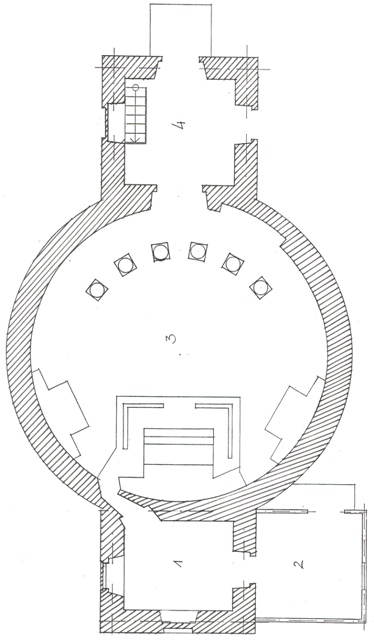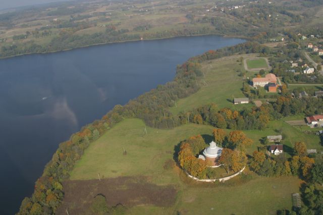 1818–1920 m. duomenimis, bažnyčios pastatas buvo apvalios formos, po 20 uolekčių ilgio pločio ir aukščio. Iš išorės sienų tinkas buvo pridaigstytas smulkiais akmenėliais, stogas uždengtas geležies skarda. Bažnyčios centre (kupole) virš skliauto buvo žibintas arba langas, per kurį į vidų patekdavo šviesa. Šis langas buvo pagamintas iš storo stiklo, 5 uolekčių ilgio ir 7 uolekčių pločio.