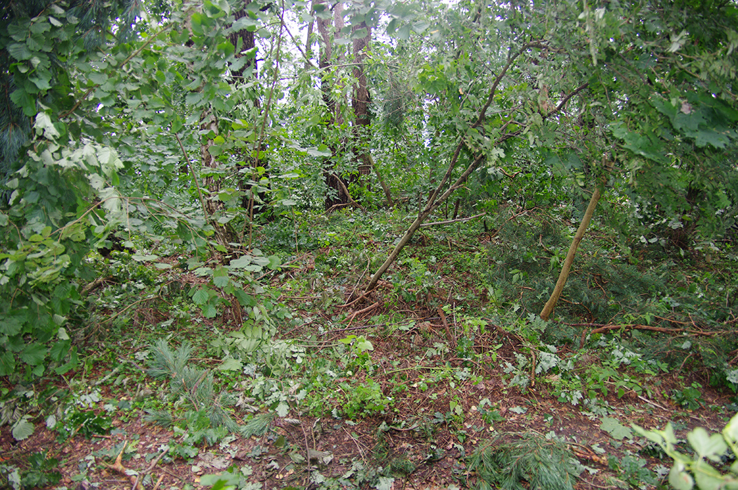 Akmenų vainikų, duobių ar griovių aplink sampilus nepastebėta.