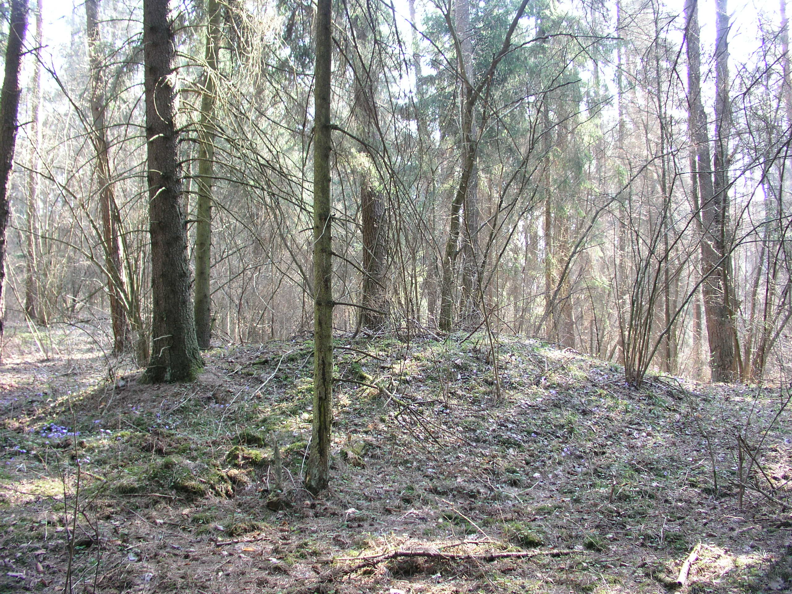 Pilkapių sampilus juosia grioviai ir duobės.