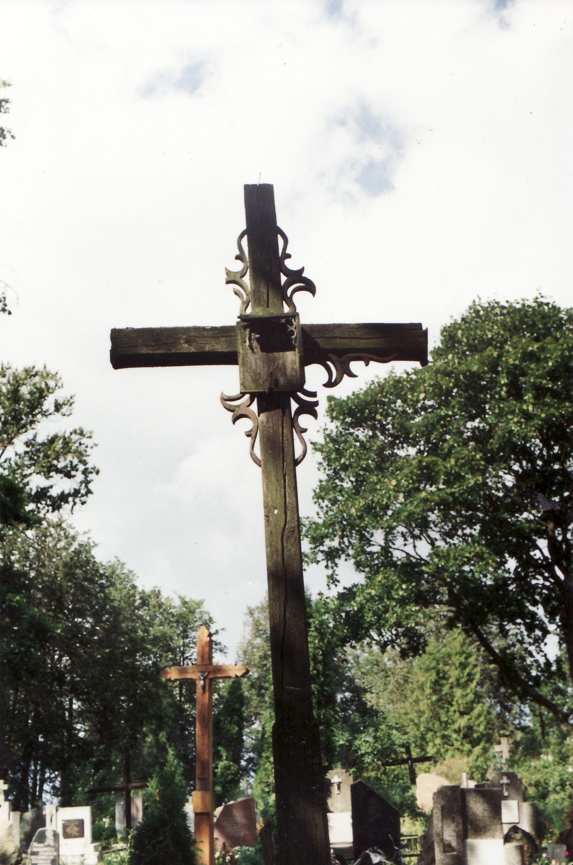 Seniausias išlikęs antkapis su 1880 m. palaidojimo data. R. Gustaičio nuotr. 2001 m.