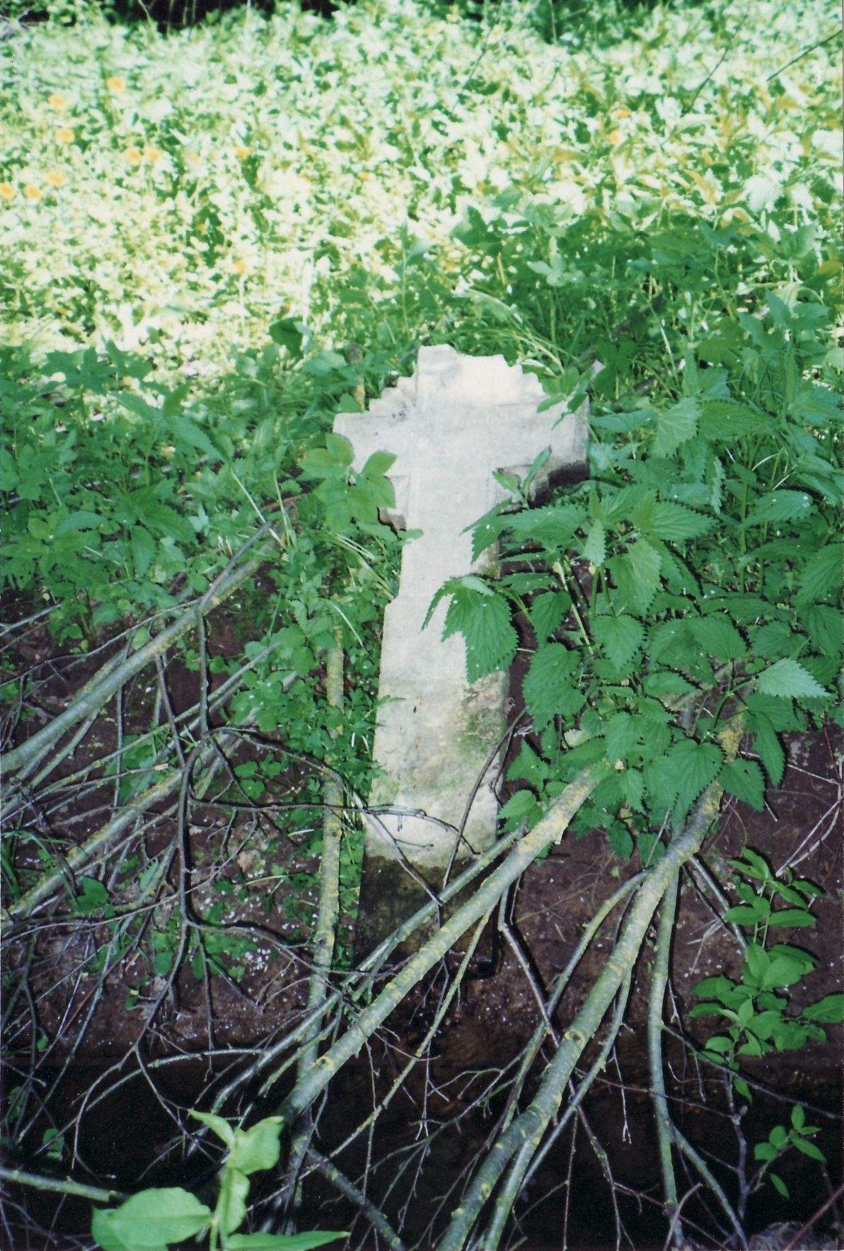 Lietuvos nepriklausomybės kovų savanorio Stasio Leskausko antkapis, ištrauktas iš Verdasos upelio (kitoje geležinkelio pusėje). R. Gustaičio nuotr. 2001 m.