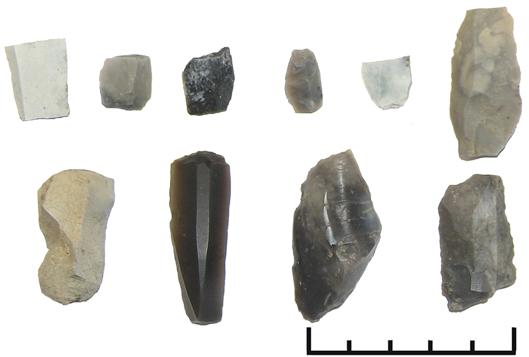 Gyvenvietės teritorijos, ypač lauko keliukų, paviršiuje rasta daug titnago radinių: gremžtukas, grandukai, peilis, skaldytinių fragmentų, skelčių, nuoskalų, taip pat viena lipdytos keramikos lygiu paviršiumi šukė. Dalis radinių yra degę.